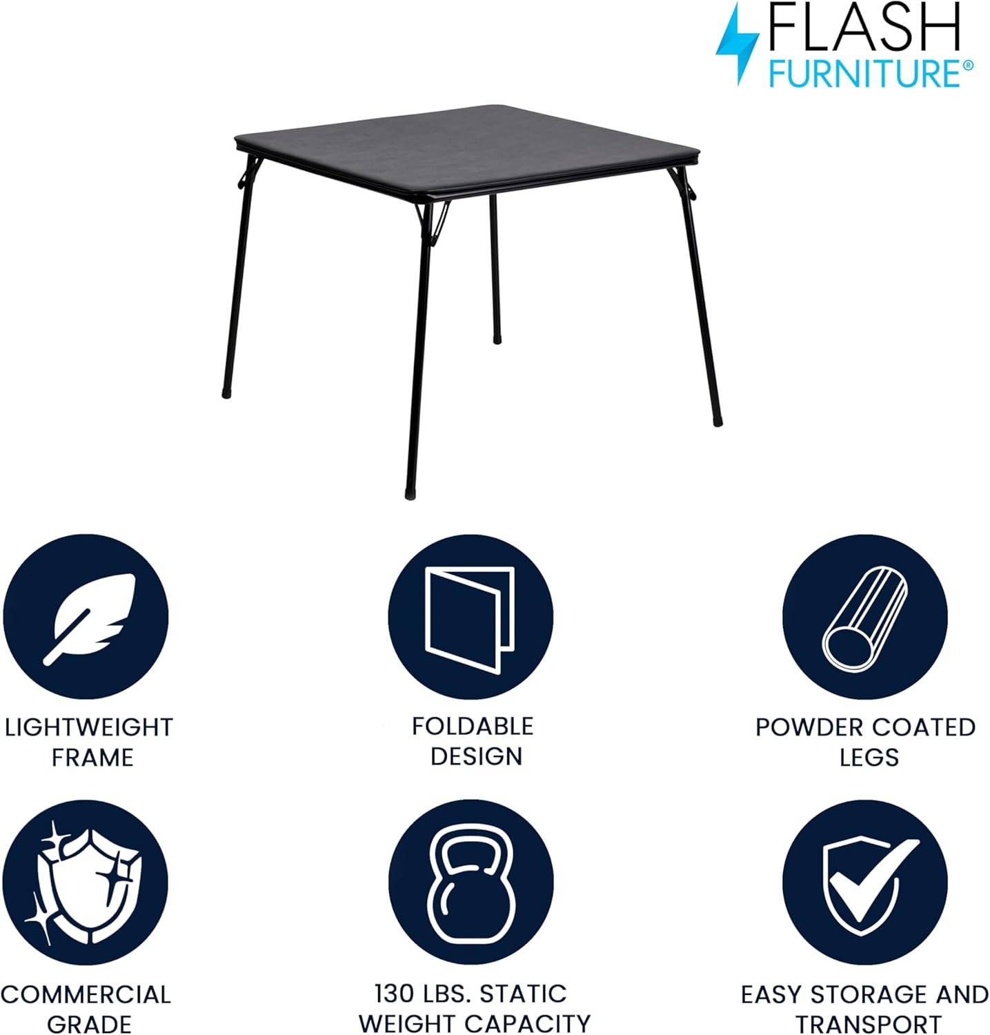 The Flash Furniture Madelyn 33.5" Square Folding Multipurpose Card Table is the perfect solution for family game nights, parties, and gatherings. Designed to seat up to four players comfortably, this portable game table features a padded vinyl top to prevent cards from sliding and collapsible, sturdy legs for effortless storage and transport. Built with durable plastic, metal, MDF, and foam, it's ready for instant use with no assembly required. Whether hosting guests or enjoying a puzzle marathon, it's a versatile, stylish addition to your home events.