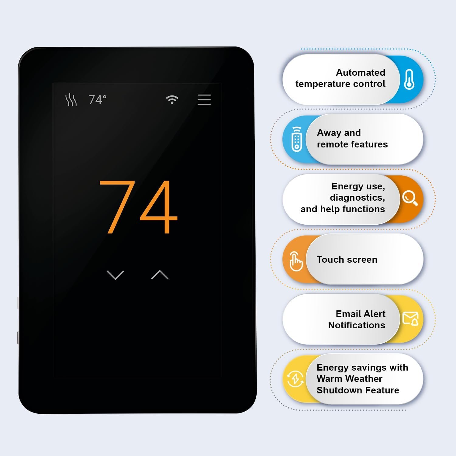 - Floor and Air Sensing: Advanced dual sensing ensures floors are consistently warm and protected, catering to a variety of flooring materials and reducing the risk of overheating.