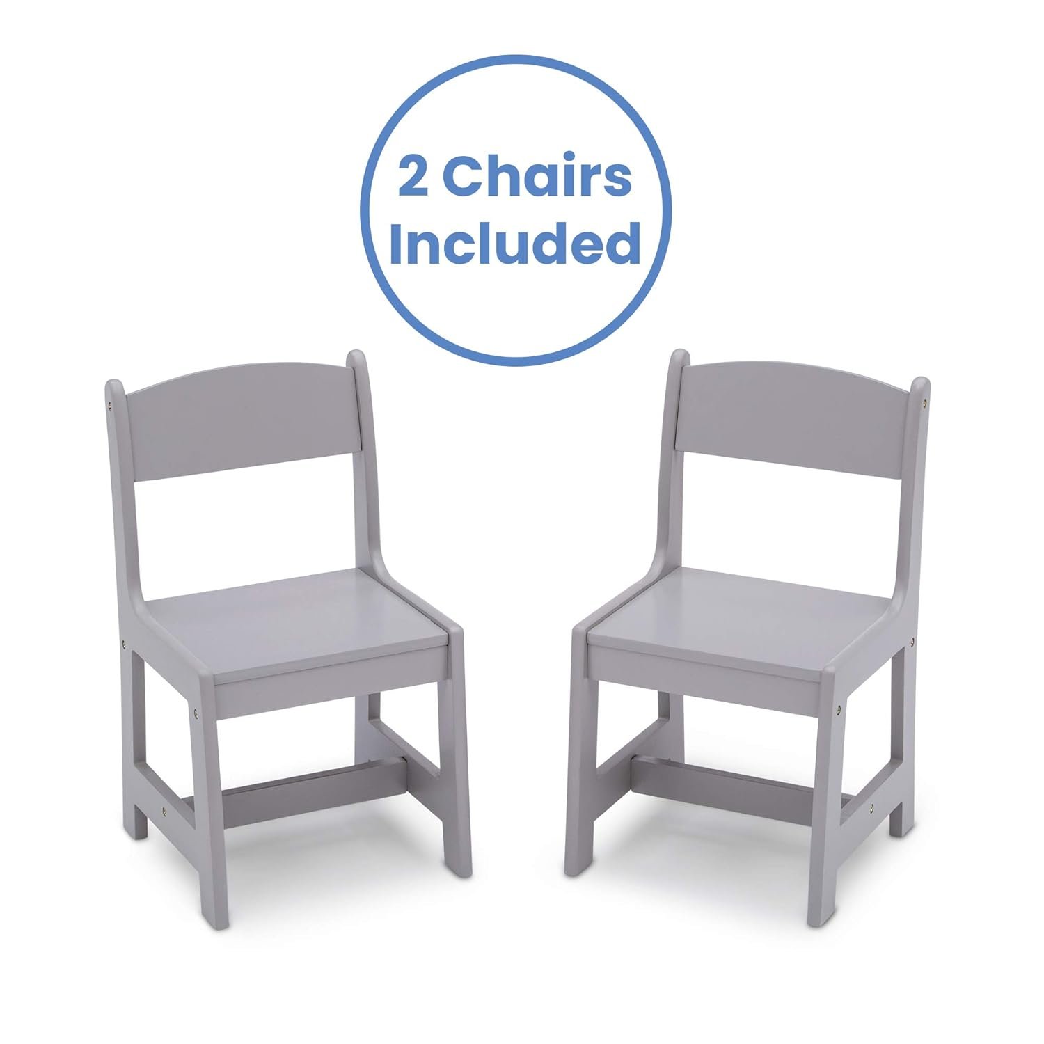 The Delta Children MySize Kids Wood Table and Chair Set is a stylish and durable 3-piece set perfect for toddlers ages 3 and up. Crafted from sturdy MDF wood and finished with a non-toxic, Greenguard Gold Certified process, it ensures a safe environment for your child’s arts, crafts, and snack time. Each chair supports up to 50 pounds, making it both practical and long-lasting. Compact and modern in grey, this is an excellent addition to any kids' room or play area.