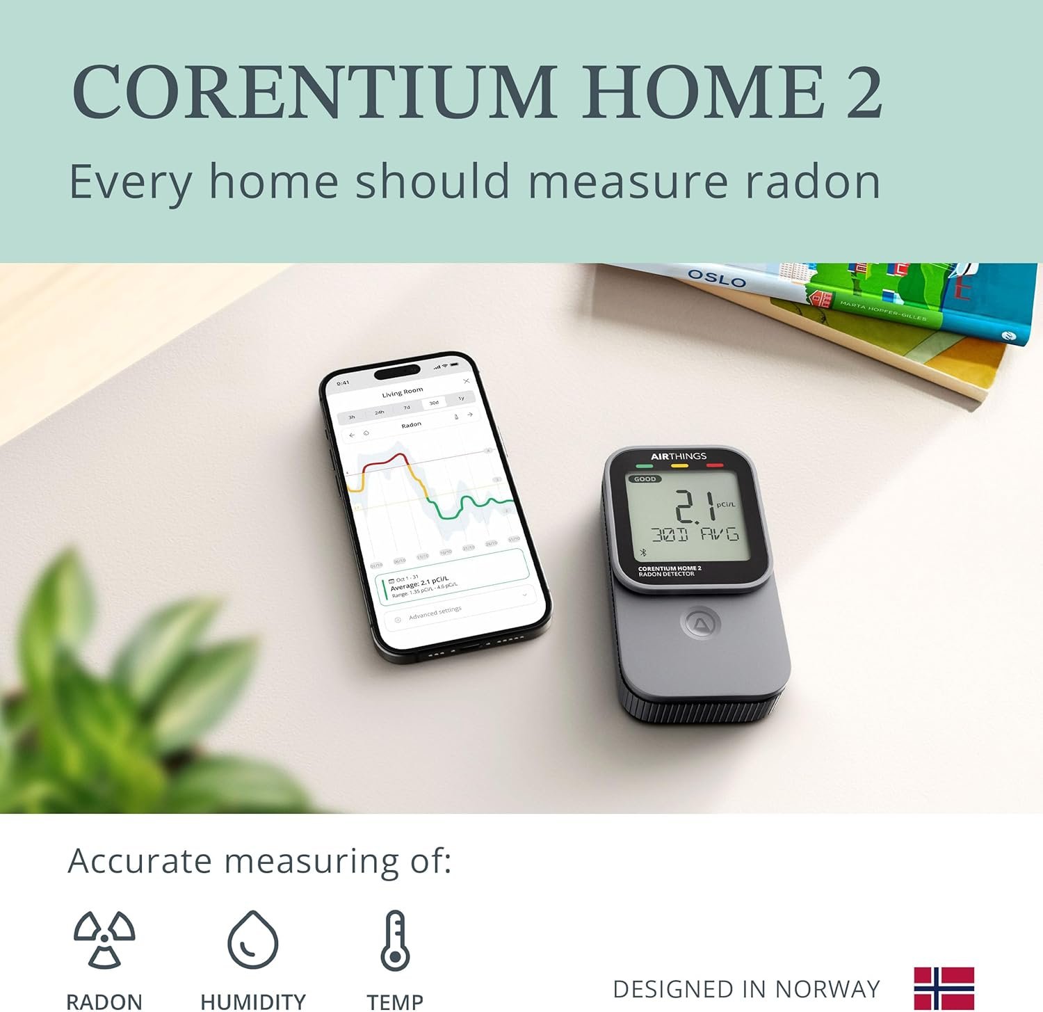 The Airthings 325 Corentium Home 2 Smart Digital Radon Detector delivers proven, pro-level radon detection with updated Bluetooth connectivity and added humidity and temperature sensors. Continuously monitor your home for harmful radon gas and get instant, lab-free results right on your phone. With easy-to-read app graphs and personalized tips, you can confidently keep your space safe. Trusted by professionals and now more convenient than ever, this Airthings device is a smart investment for any health-conscious homeowner.