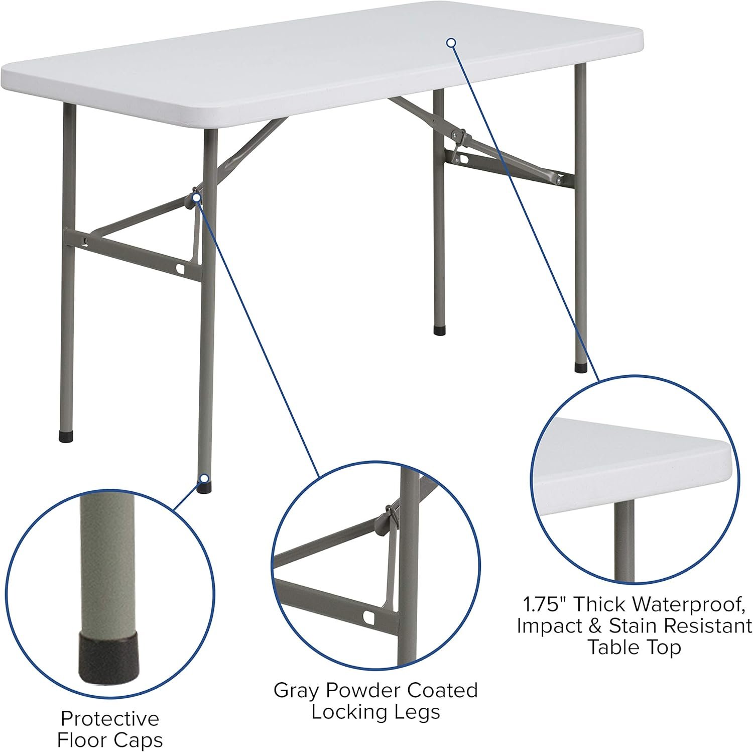 When placed alongside other compact event surfaces, this product matches the stability of EventStable’s TitanPro™ plastic tables and outperforms wood banquet options when water resistance is essential. Premium competitors like Lifetime’s 4′ portable table are similar in weight but often cost more. The model’s warranty and build quality give it a strong edge for those prioritizing reliability over style alone.